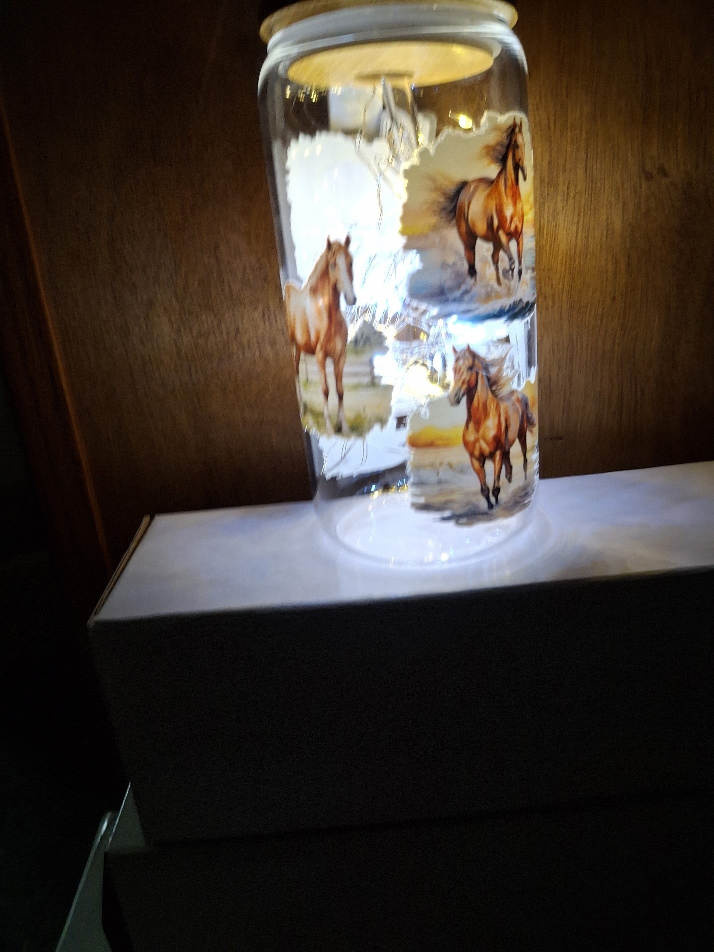 Clear and milk white glasses. With lights make a perfect Night Light for any room. remove lights to use for beverages.