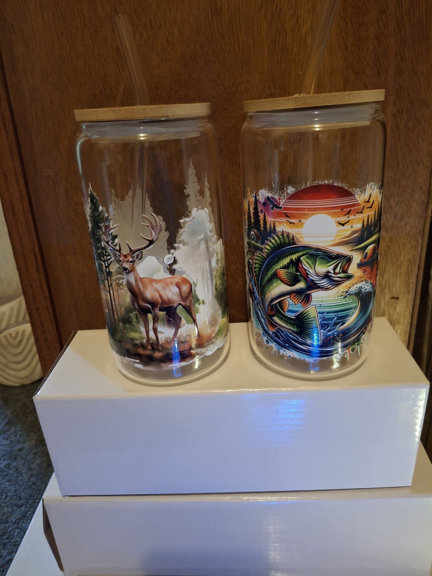 Clear and milk white glasses. With lights make a perfect Night Light for any room. remove lights to use for beverages.